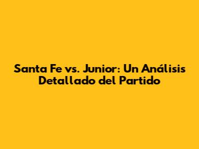 Santa Fe Vs Junior: Análisis Del Partido Y Resultados